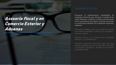 Aduanas                                                                                                             Planeación estratégica fiscal, con el objeto de ofrecerle
